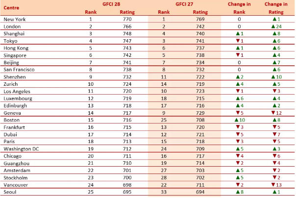 数据来源:2020年“第 28 期全球金融中心指数(GFCI 28)”报告